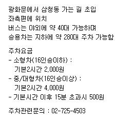 자가용을 이용 시는 박물관 주차장이 없으므로 경복궁 주차장을 이용하시기 바랍니다.
