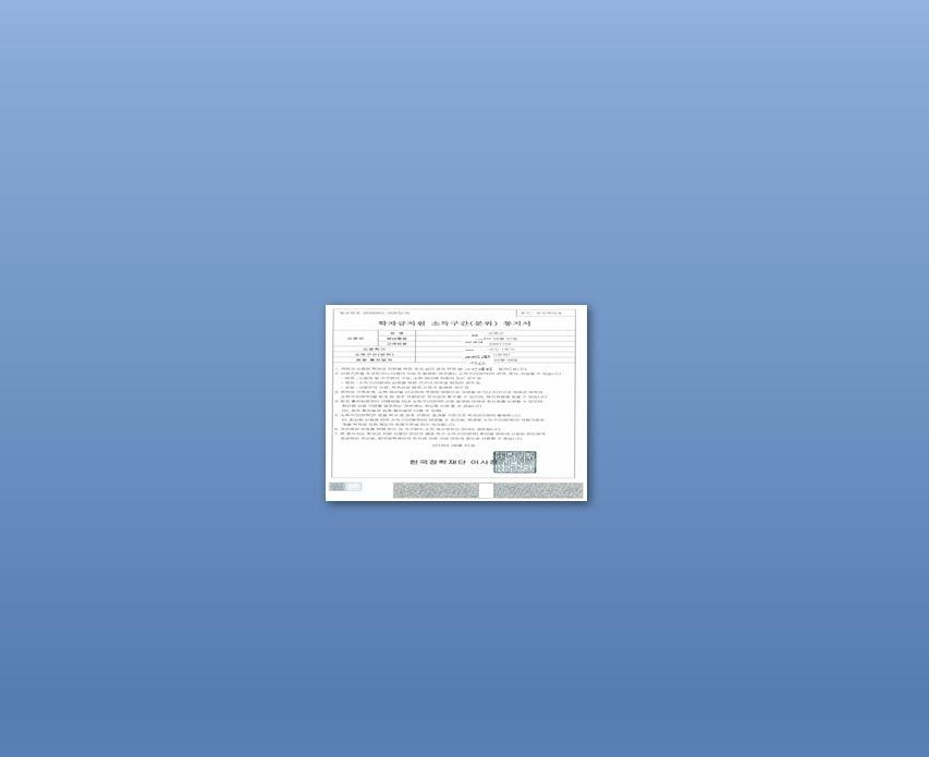 -발급일자와 발행처의 직인 날인이 표시되어 있어야 하니 반드시 마지막 부분의 발급일, 직인까지 스캔하여야 함